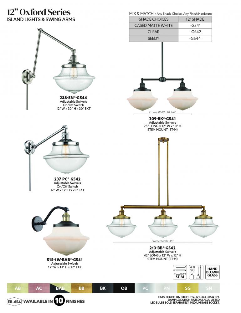 Oxford - 1 Light - 12 inch - Polished Chrome - Clear Shade -Adjustable Swing Arm
