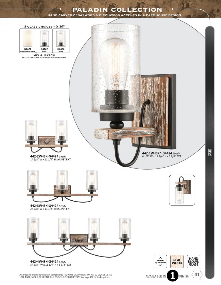 The Paladin collection is comprised of hand carved cedarwood and birchwood accents that give the fixture a farmhouse or lodge look and feel.