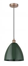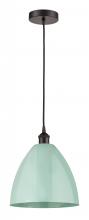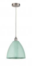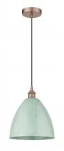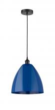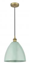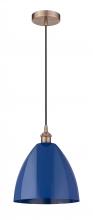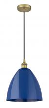 Plymouth - 1 Light - 12 inch - Antique Brass - Blue Shade - Cord hung - Mini Pendant