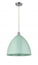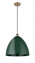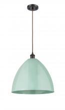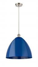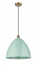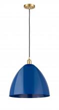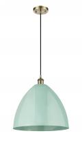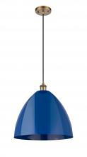 Plymouth - 1 Light - 16 inch - Antique Brass - Blue Shade - Cord hung - Mini Pendant