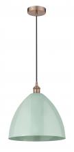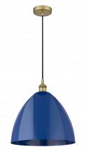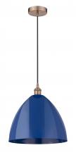 Plymouth - 1 Light - 16 inch - Antique Brass - Blue Shade - Cord hung - Mini Pendant