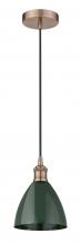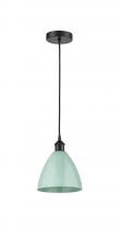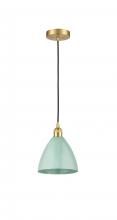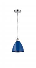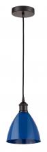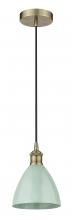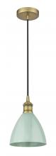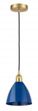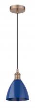 Plymouth - 1 Light - 8 inch - Antique Brass - Blue Shade - Cord hung - Mini Pendant