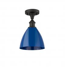 Plymouth - 1 Light - 8 inch - Antique Brass - Blue Shade - Semi-Flush Mount
