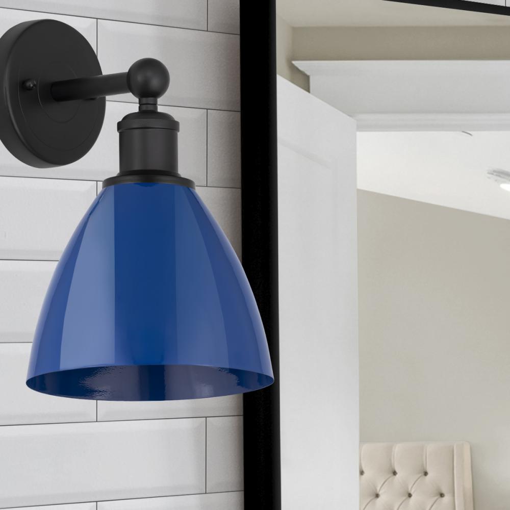 Plymouth - 1 Light - 8 inch - Matte Black - Blue Shade - Sconce