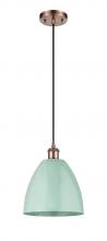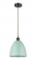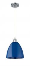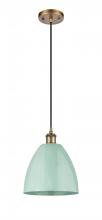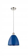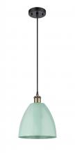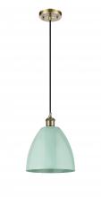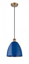 Plymouth - 1 Light - 9 inch - Antique Brass - Blue Shade - Cord hung - Mini Pendant