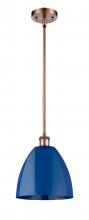 Plymouth - 1 Light - 9 inch - Antique Brass - Blue Shade - Pendant
