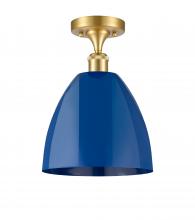 Plymouth - 1 Light - 9 inch - Antique Brass - Blue Shade - Semi-Flush Mount