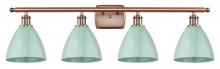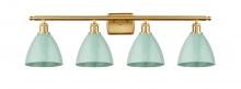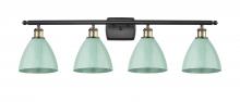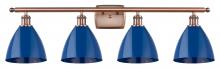 Plymouth - 4 Light - 38 inch - Antique Brass - Blue Shade - Bath Vanity Light