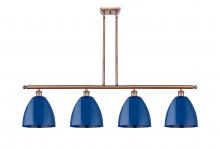 Plymouth - 4 Light - 48 inch - Antique Brass - Blue Shade - Stem hung - Island Light