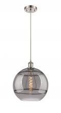 The Rochester Series is meticulously handcrafted, showcasing exquisite glass band detailing. These bands are the result of a complex and delicate glassblowing technique, making each pendant truly one-of-a-kind. While the exterior of the glass shade has a s