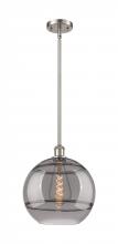 The Rochester Series is meticulously handcrafted, showcasing exquisite glass band detailing. These bands are the result of a complex and delicate glassblowing technique, making each pendant truly one-of-a-kind. While the exterior of the glass shade has a s