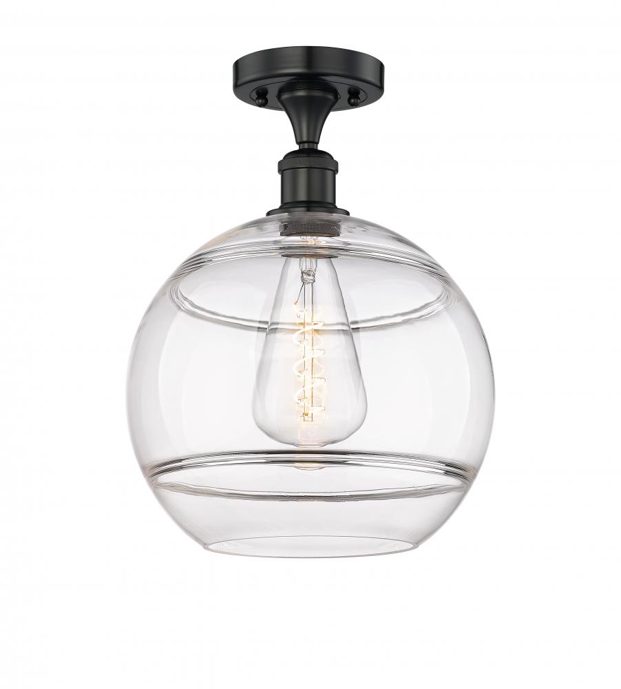 Rochester - 1 Light - 12 inch - Matte Black - Clear Shade - Semi-Flush Mount