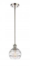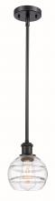 The Rochester Series is meticulously handcrafted, showcasing exquisite glass band detailing. These bands are the result of a complex and delicate glassblowing technique, making each pendant truly one-of-a-kind. While the exterior of the glass shade has a s