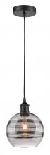 The Rochester Series is meticulously handcrafted, showcasing exquisite glass band detailing. These bands are the result of a complex and delicate glassblowing technique, making each pendant truly one-of-a-kind. While the exterior of the glass shade has a s