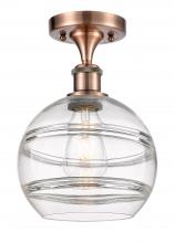 Rochester - 1 Light - 8 inch - Antique Brass - Clear Shade - Semi-Flush Mount