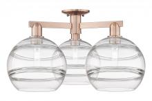 Rochester - 3 Light - 28 inch - Antique Brass - Clear shade - Semi-Flush Mount