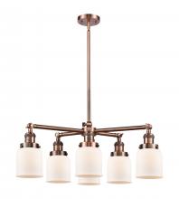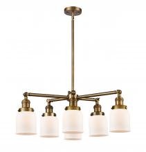 Bell - 6 Light 28" Chandelier - Incandescent Bulb - Antique Brass Finish - Matte White Shade