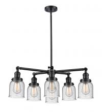 Small Bell 6 Light Chandelier part of the Franklin Restoration Collection The Body Height is 15 inches when the bulbs are facing up and 28 inch Height when the bulbs are facing down. Solid Brass 90 Degree Hang Straight Swivel for Sloped Ceilings Included.