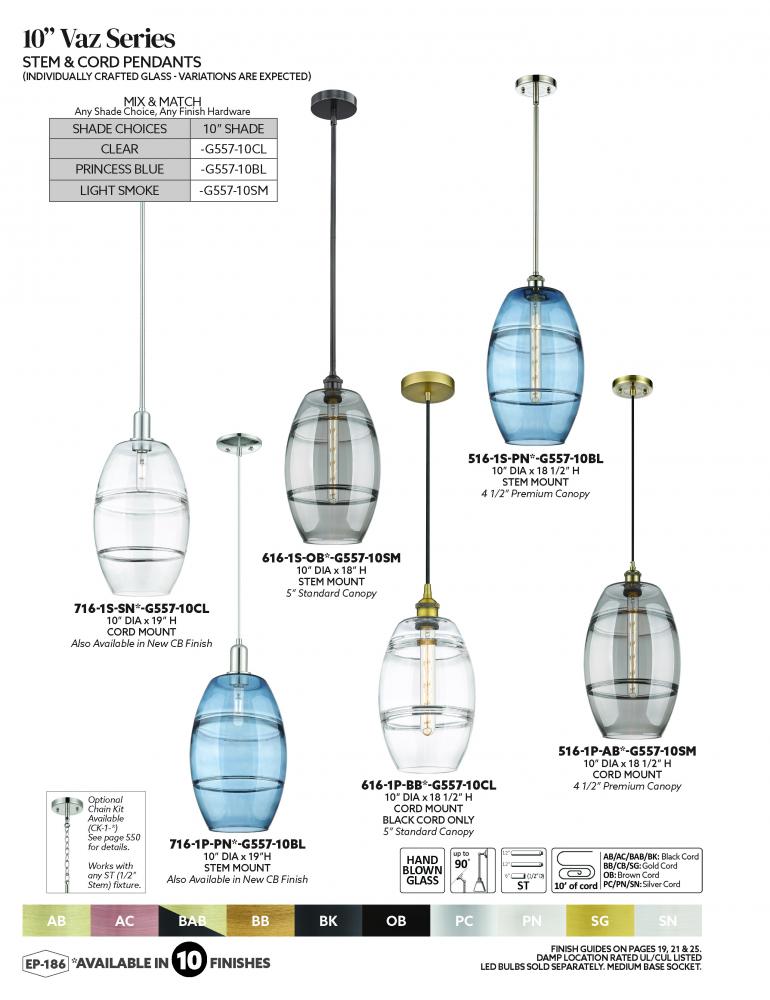 The Edison collection is comprised of heavy cast components that give the fixture a sturdy transitional look. We offer the fixture in 9 finishes with a Bare Bulb look or with over 100 possible metal and glass shade options that can change the style to fit