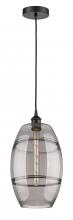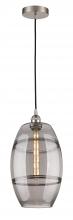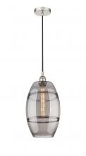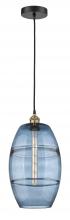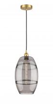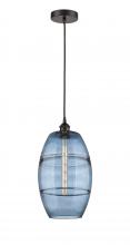 The Vas Series is meticulously handcrafted, showcasing exquisite glass band detailing. These bands are the result of a complex and delicate glassblowing technique, making each pendant truly one-of-a-kind. While the exterior of the glass shade has a sleek a