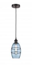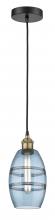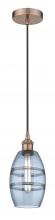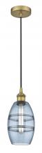 Vaz - 1 Light - 6 inch - Antique Brass - Blue Shade - Cord hung - Mini Pendant