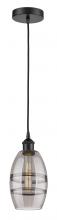The Vas Series is meticulously handcrafted, showcasing exquisite glass band detailing. These bands are the result of a complex and delicate glassblowing technique, making each pendant truly one-of-a-kind. While the exterior of the glass shade has a sleek a