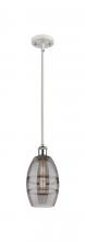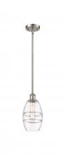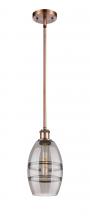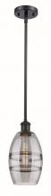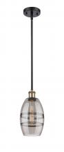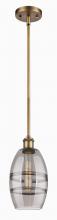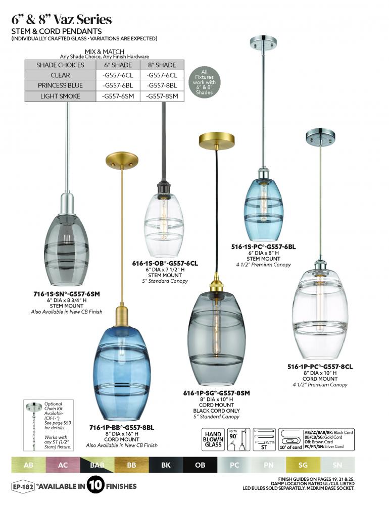 The Vas Series is meticulously handcrafted, showcasing exquisite glass band detailing. These bands are the result of a complex and delicate glassblowing technique, making each pendant truly one-of-a-kind. While the exterior of the glass shade has a sleek a