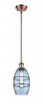 Vaz - 1 Light - 6 inch - Antique Brass - Blue Shade - Mini Pendant