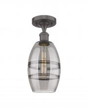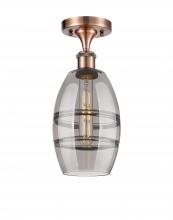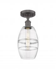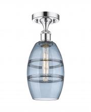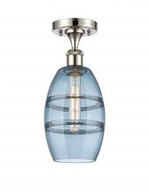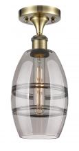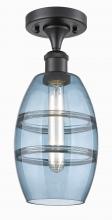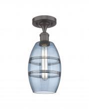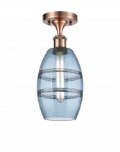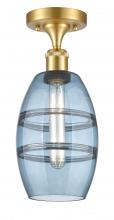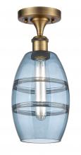 Vaz - 1 Light - 6 inch - Antique Brass - Blue Shade - Semi-Flush Mount