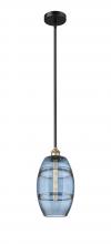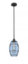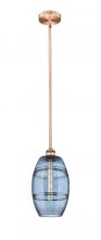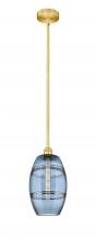 Vaz - 1 Light - 8 inch - Antique Brass - Blue Shade - Stem hung - Mini Pendant