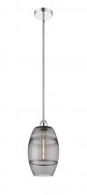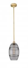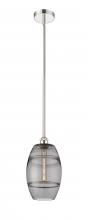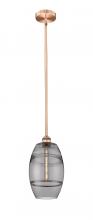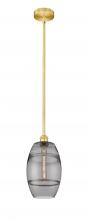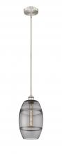 The Vas Series is meticulously handcrafted, showcasing exquisite glass band detailing. These bands are the result of a complex and delicate glassblowing technique, making each pendant truly one-of-a-kind. While the exterior of the glass shade has a sleek a