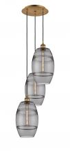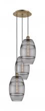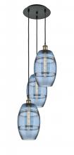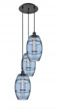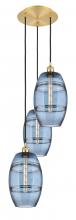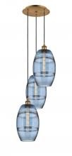 Vaz - 3 Light - 15 inch - Antique Brass - Blue Shade - Cord hung - Multi Pendant