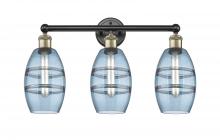 Vaz - 3 Light - 24 inch - Antique Brass - Blue Shade - Bath Vanity Light