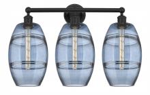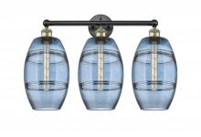 Vaz - 3 Light - 26 inch - Antique Brass - Blue Shade - Bath Vanity Light