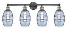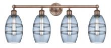 Vaz - 4 Light - 33 inch - Antique Brass - Blue Shade - Bath Vanity Light