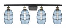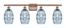 Vaz - 4 Light - 36 inch - Antique Brass - Blue Shade - Bath Vanity Light