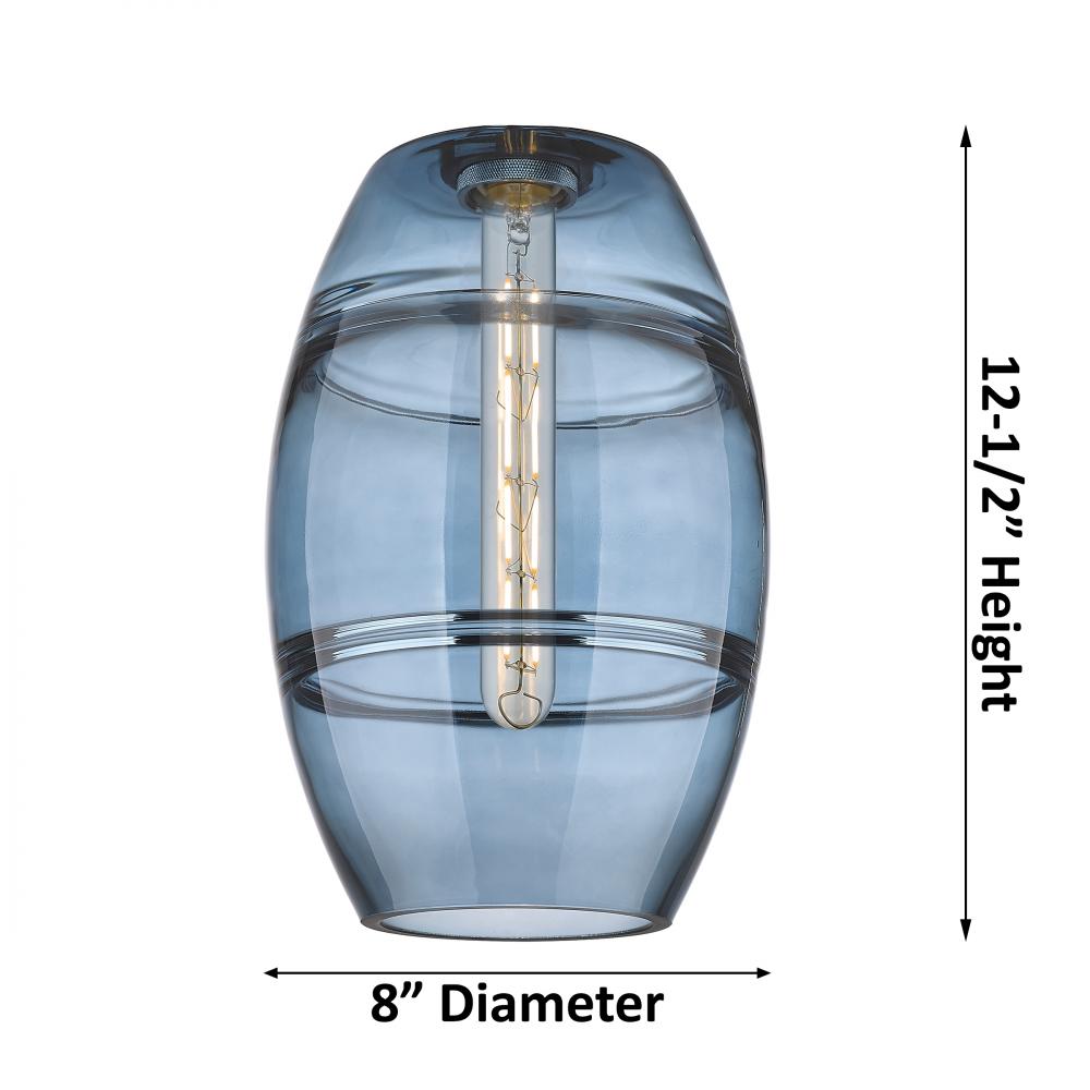 The Vas Series is meticulously handcrafted, showcasing exquisite glass band detailing. These bands are the result of a complex and delicate glassblowing technique, making each pendant truly one-of-a-kind. While the exterior of the glass shade has a sleek a