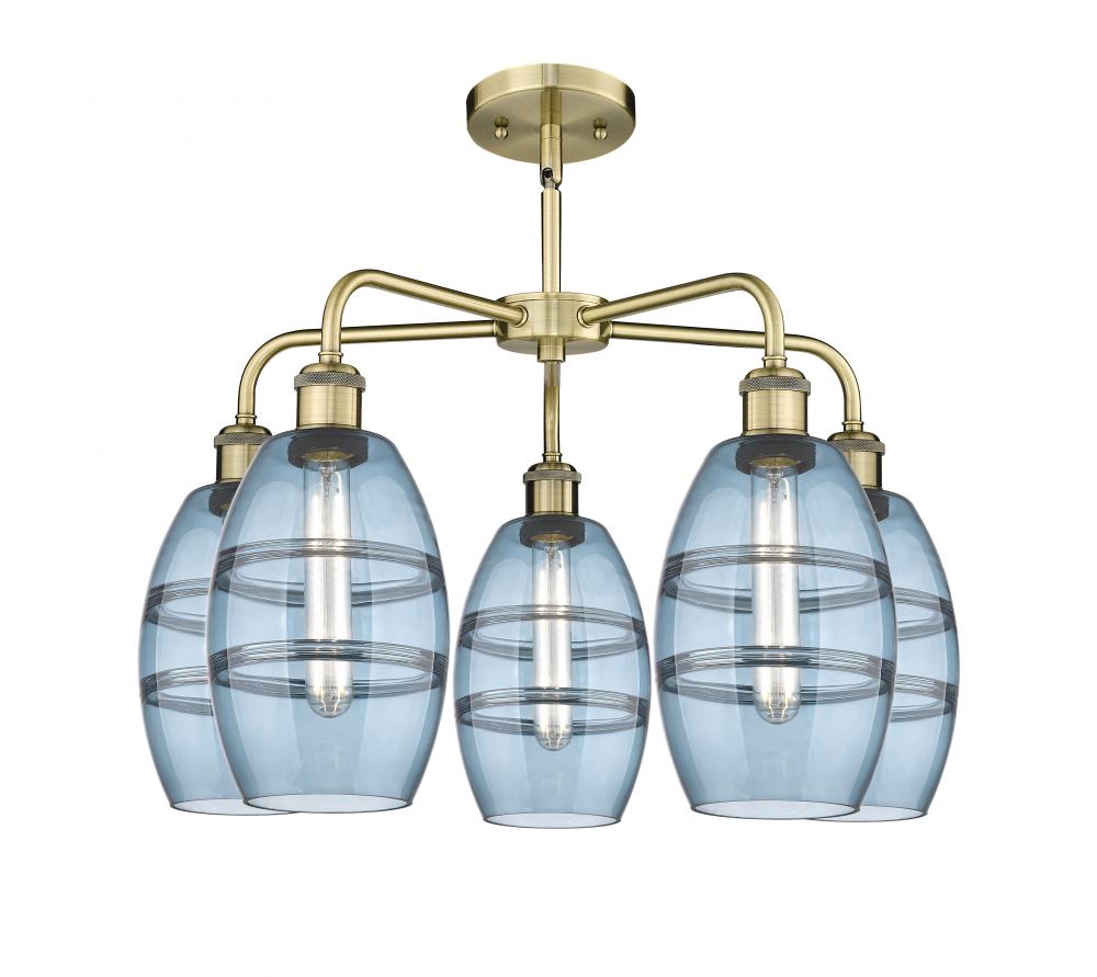 Vaz - 5 Light - 24 inch - Antique Brass - Blue Shade - Chandelier
