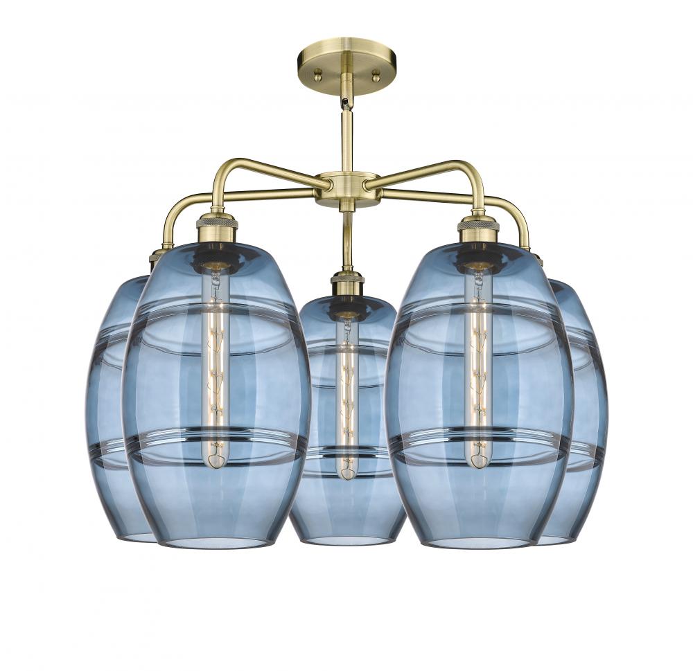 Vaz - 5 Light - 26 inch - Antique Brass - Blue Shade - Chandelier