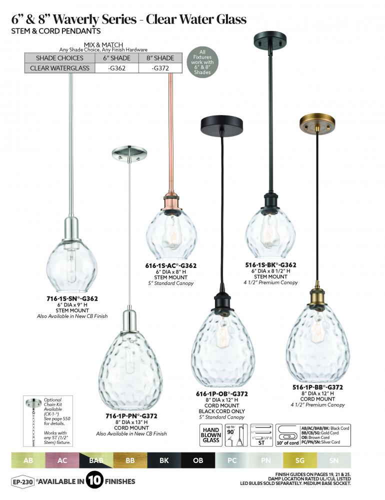 The Edison collection is comprised of heavy cast components that give the fixture a sturdy transitional look. We offer the fixture in 9 finishes with a Bare Bulb look or with over 100 possible metal and glass shade options that can change the style to fit