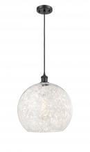 White Mouchette - 1 Light - 14 inch - Antique Brass - White Mouchette Shade - Cord Hung - Pendant