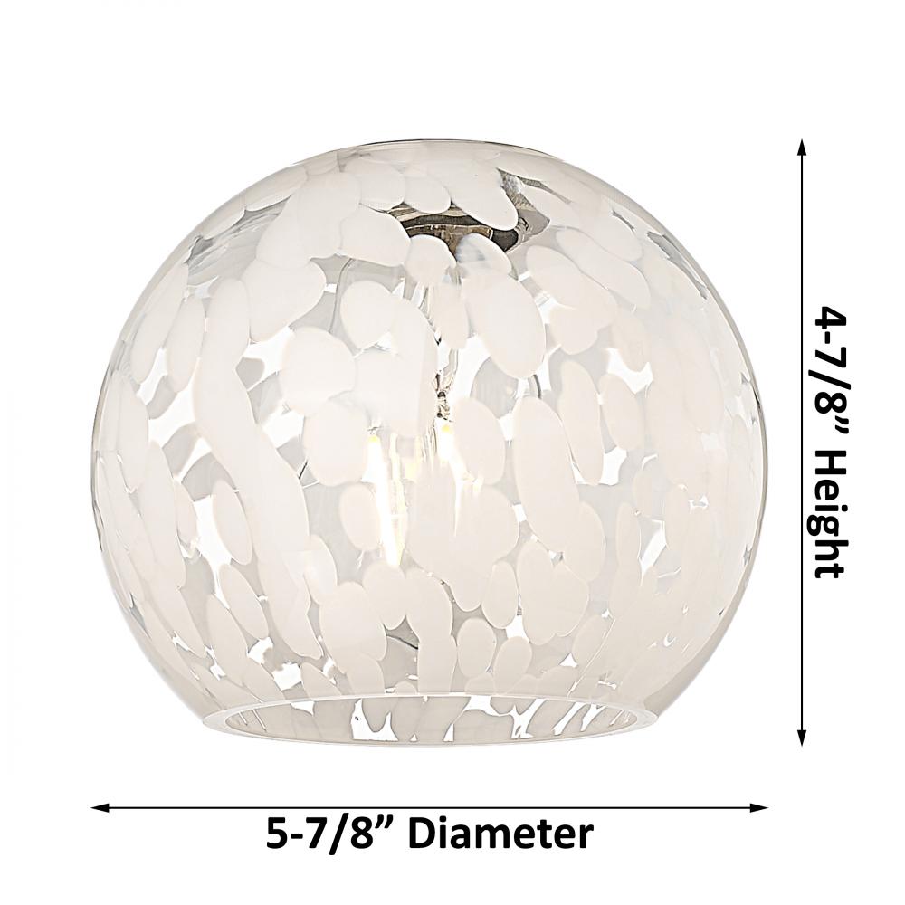 White Mouchette - 1 Light - 6 inch - Antique Brass - White Mouchette Shade - Semi-Flush Mount