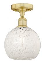 White Mouchette - 1 Light - 8 inch - Antique Brass - White Mouchette Shade - Semi-Flush Mount