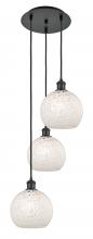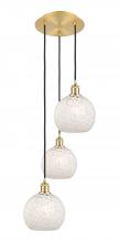 White Mouchette - 3 Light - 15 inch - Antique Brass - White Mouchette Shade - Cord Hung - Multi Pendant