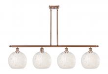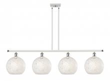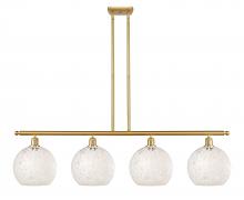 White Mouchette - 4 Light - 48 inch - Antique Brass - White Mouchette Shade - Stem Hung - Island Light