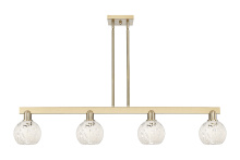 White Mouchette - 4 Light - 49 inch - Antique Brass - White Mouchette shade - Stem hung - Island Light