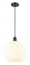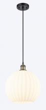 White Venetian - 1 Light - 12 inch - Antique Brass - White Venetian Shade - Cord Hung - Mini Pendant