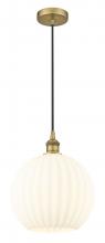 White Venetian - 1 Light - 12 inch - Antique Brass - White Venetian Shade - Cord Hung - Mini Pendant