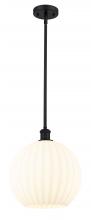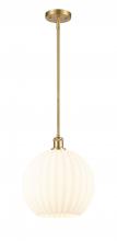 White Venetian - 1 Light - 12 inch - Antique Brass - White Venetian Shade - Mini Pendant