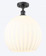 White Venetian - 1 Light - 14 inch - Antique Brass - White Venetian Shade - Semi-Flush Mount